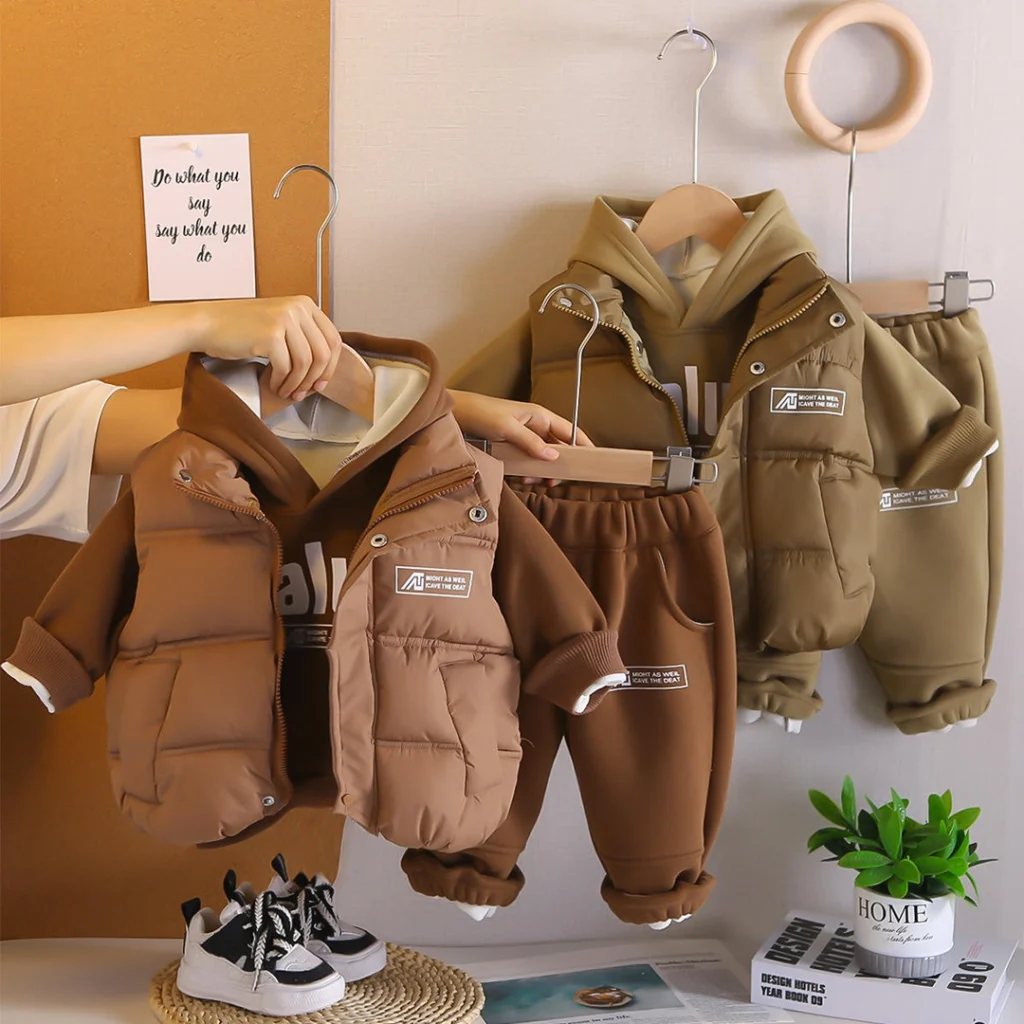 Premium Boys Winter 3-Piece Set – Fleece Vest, Hoodie & Pants (2-7 Years)